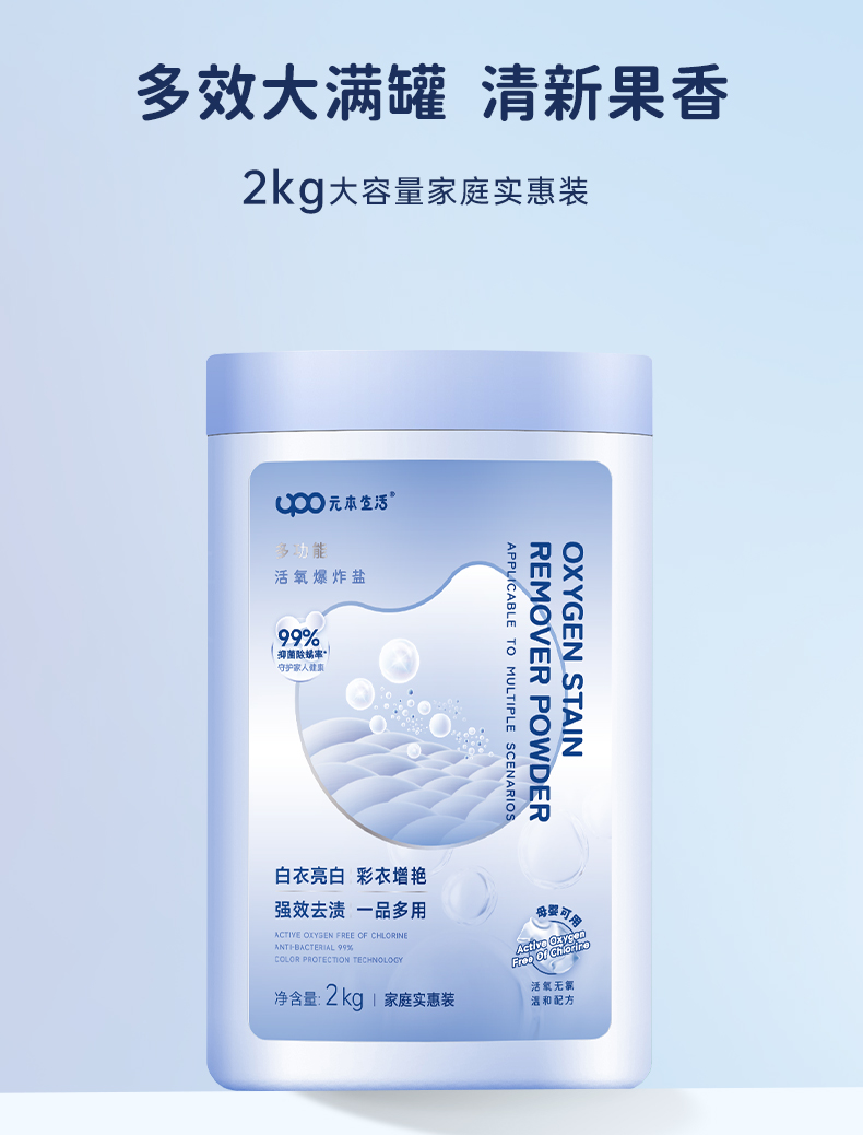 (巨邦佑)BJ+UPO元本生活 多功能活氧爆炸盐2kg 婴幼儿白色衣物通用洗衣去污渍强去黄彩漂漂白