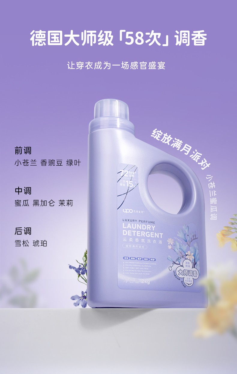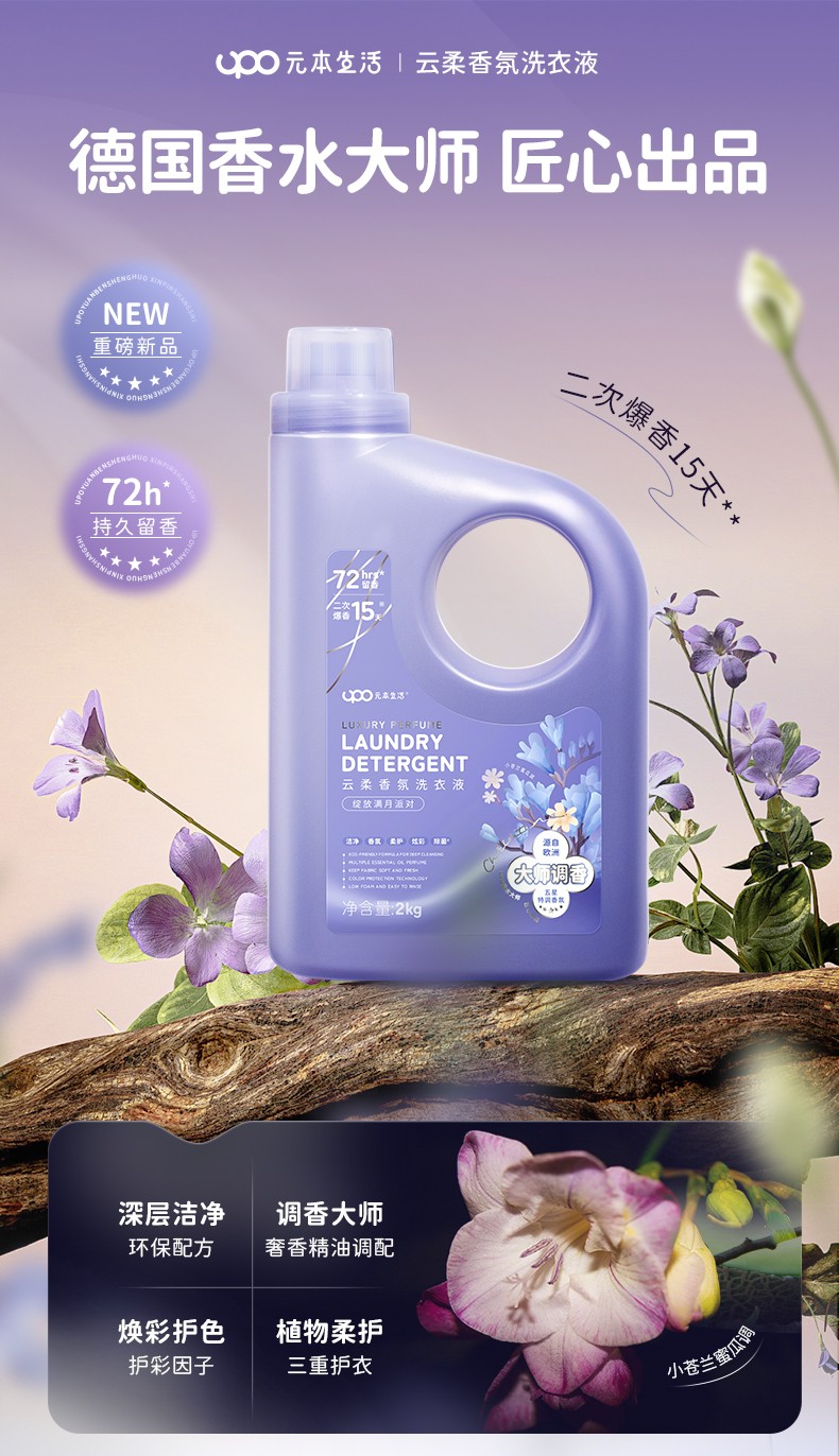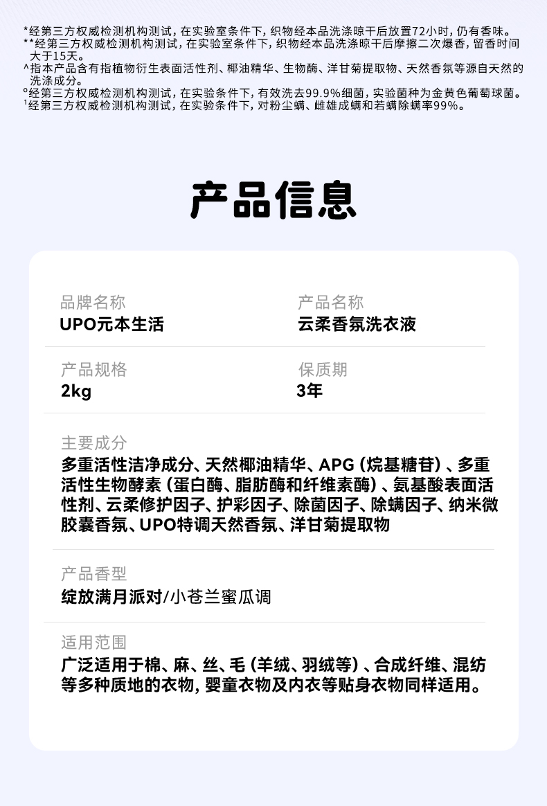 商品名称:(巨邦佑)BJ+UPO元本生活 云柔香氛洗衣液2kg 家用装除菌除螨深层洁净持久留香