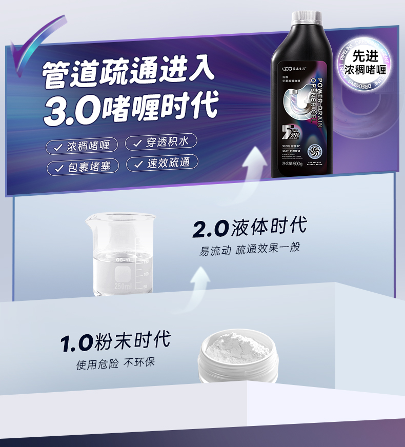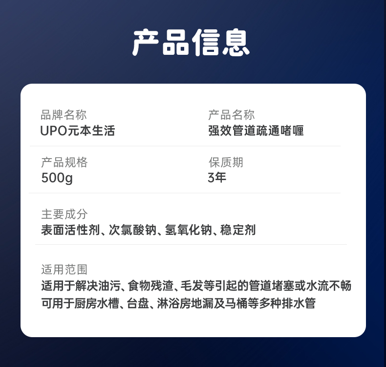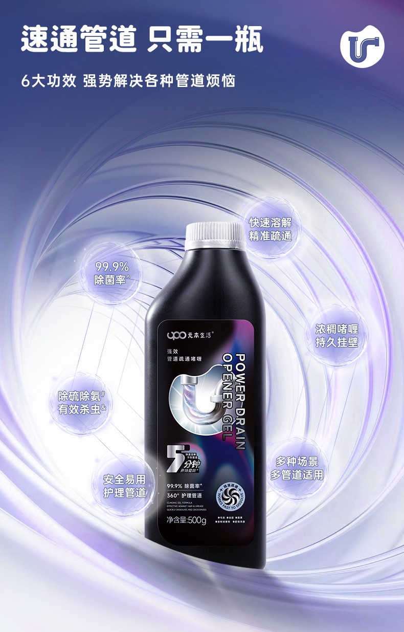 商品名称:(巨邦佑)BJ+UPO元本生活 强效管道疏通啫喱500ml 强力溶解厨房下水道油污渍马桶厕所堵塞疏通液神器