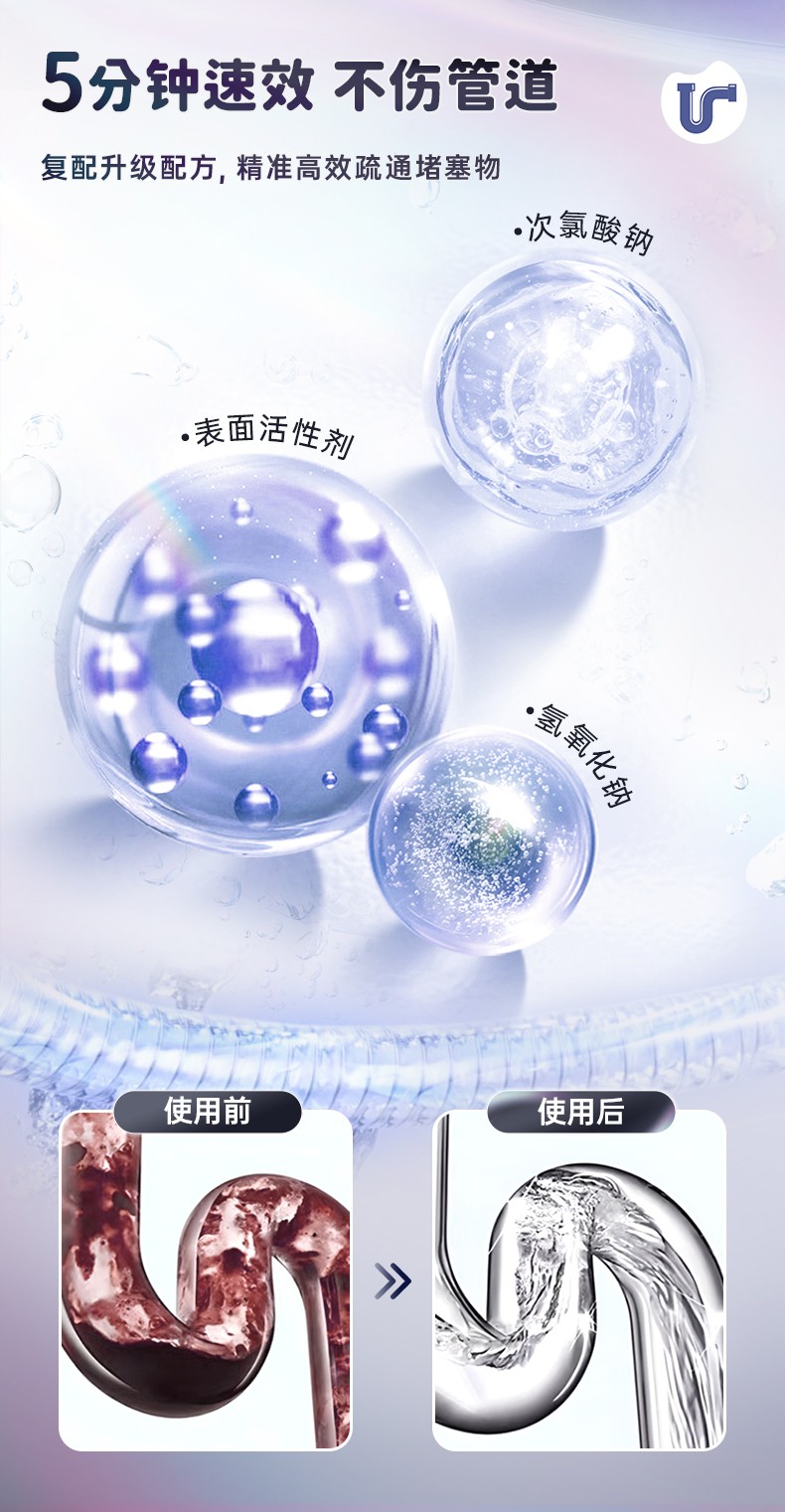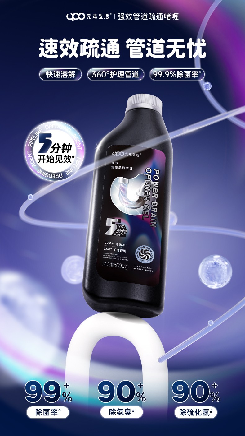 (巨邦佑)BJ+UPO元本生活 强效管道疏通啫喱500ml 强力溶解厨房下水道油污渍马桶厕所堵塞疏通液神器