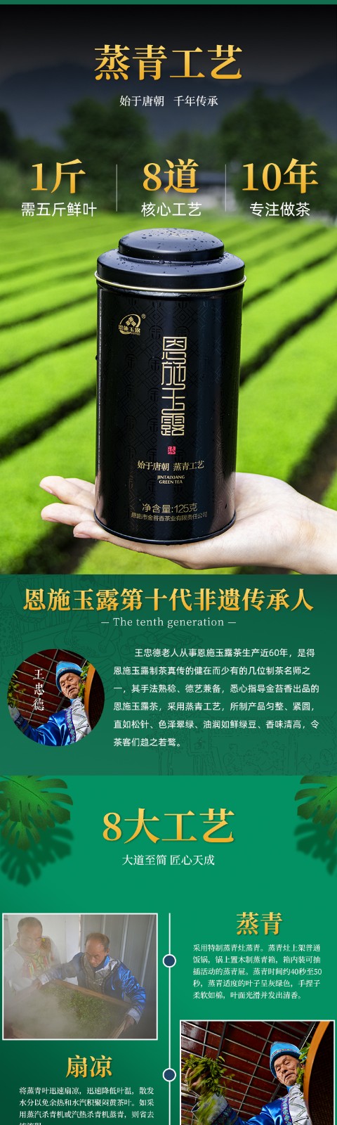 商品名称:(巨邦佑)T+金苔香2025年新茶绿茶恩施玉露黑罐装125g硒茶自己喝玉露茶明前头采自饮