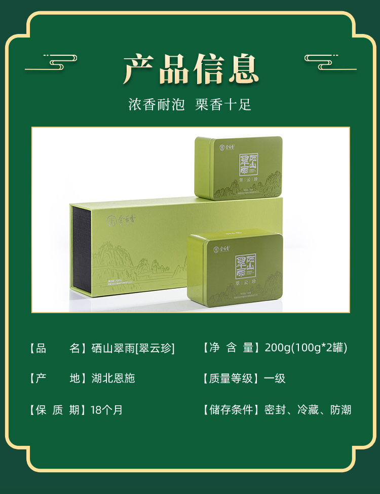 商品名称:(巨邦佑)T+金苔香2025金苔香新茶炒青绿茶恩施绿茶高山云雾茶浓香型伴手礼200g盒