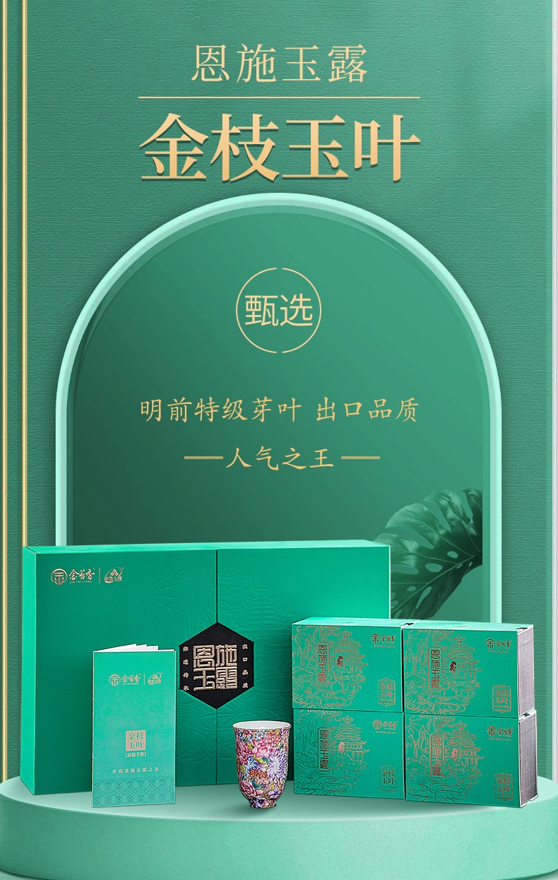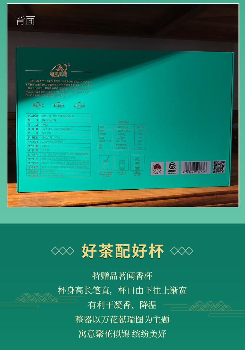 商品名称:(巨邦佑)T+金苔香金枝玉叶(万花五彩杯)华美明前蒸青玉露绿茶鲜嫩送礼好茶品质