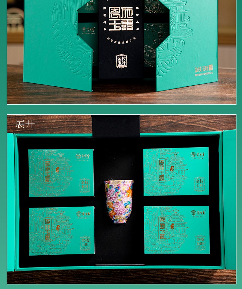 (巨邦佑)T+金苔香金枝玉叶(万花五彩杯)华美明前蒸青玉露绿茶鲜嫩送礼好茶品质