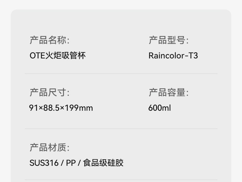 商品名称:(巨邦佑)BJ+OTE火炬吸管杯 600ml 欧堤保温大容量高颜值水杯保冷杯咖啡随行杯车载吸管杯