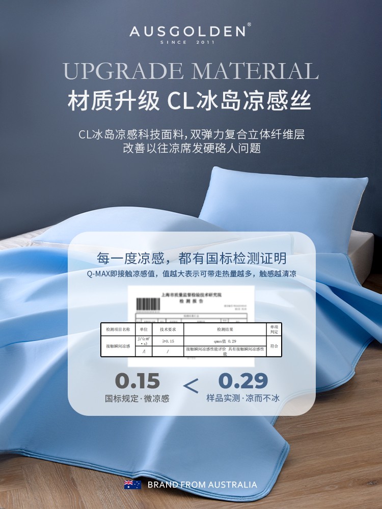 (巨邦佑)BJ+AusGolden超柔凉感席套件(凉席+枕套) 不含床垫 100%聚酰胺纤维 三件套澳洲凉席冰丝席冰丝凉席可机洗夏凉席宿舍防螨抗菌高端软席