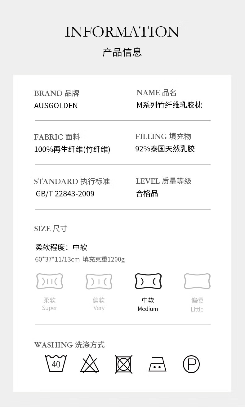 商品名称:(巨邦佑)BJ+AusGolden 竹纤维助眠乳胶枕 60*37cm 面料:100%竹纤维 MIX睡感护颈乳胶枕泰国92%天然萃取乳胶四季睡眠深度颈椎