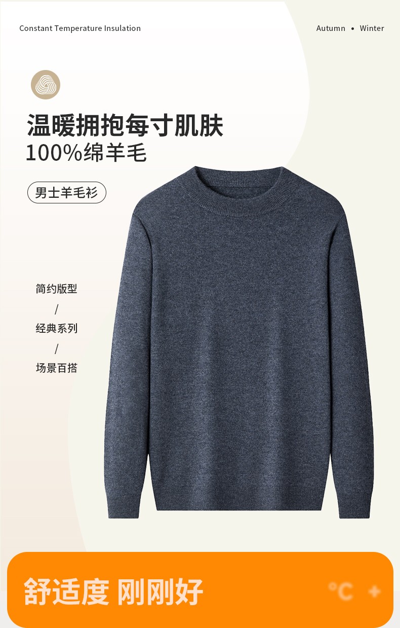 (世星阳光)+恒源祥 羊毛衫 HYXJ1063 规格 170 175 180 185 190 颜色 时尚灰 男款 下单备注尺码 时尚百搭 贴身舒适