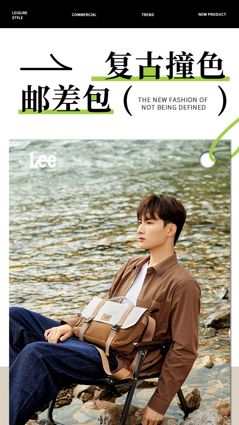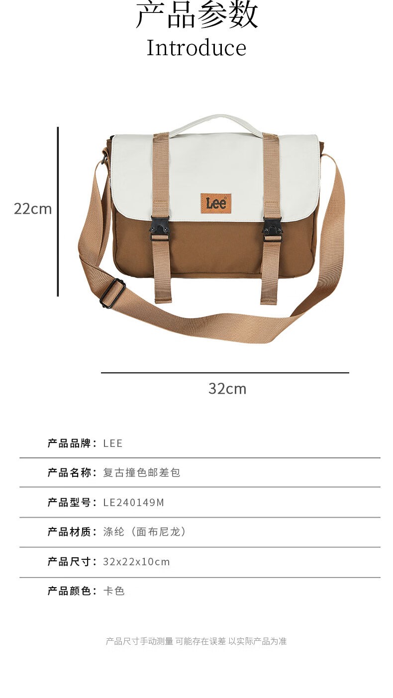 商品名称:(巨邦佑)BJ+LEE 复古撞色邮差包 LE240149M 大容量背包可调节设计