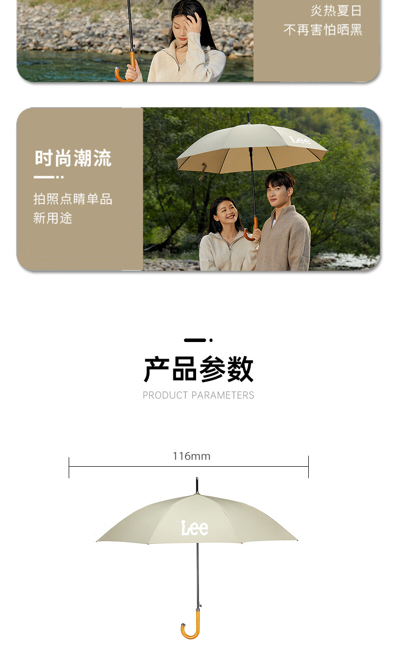 商品名称:(巨邦佑)BJ+LEE 活力长柄伞 LE248035M 木质手柄太阳伞雨伞晴雨两用