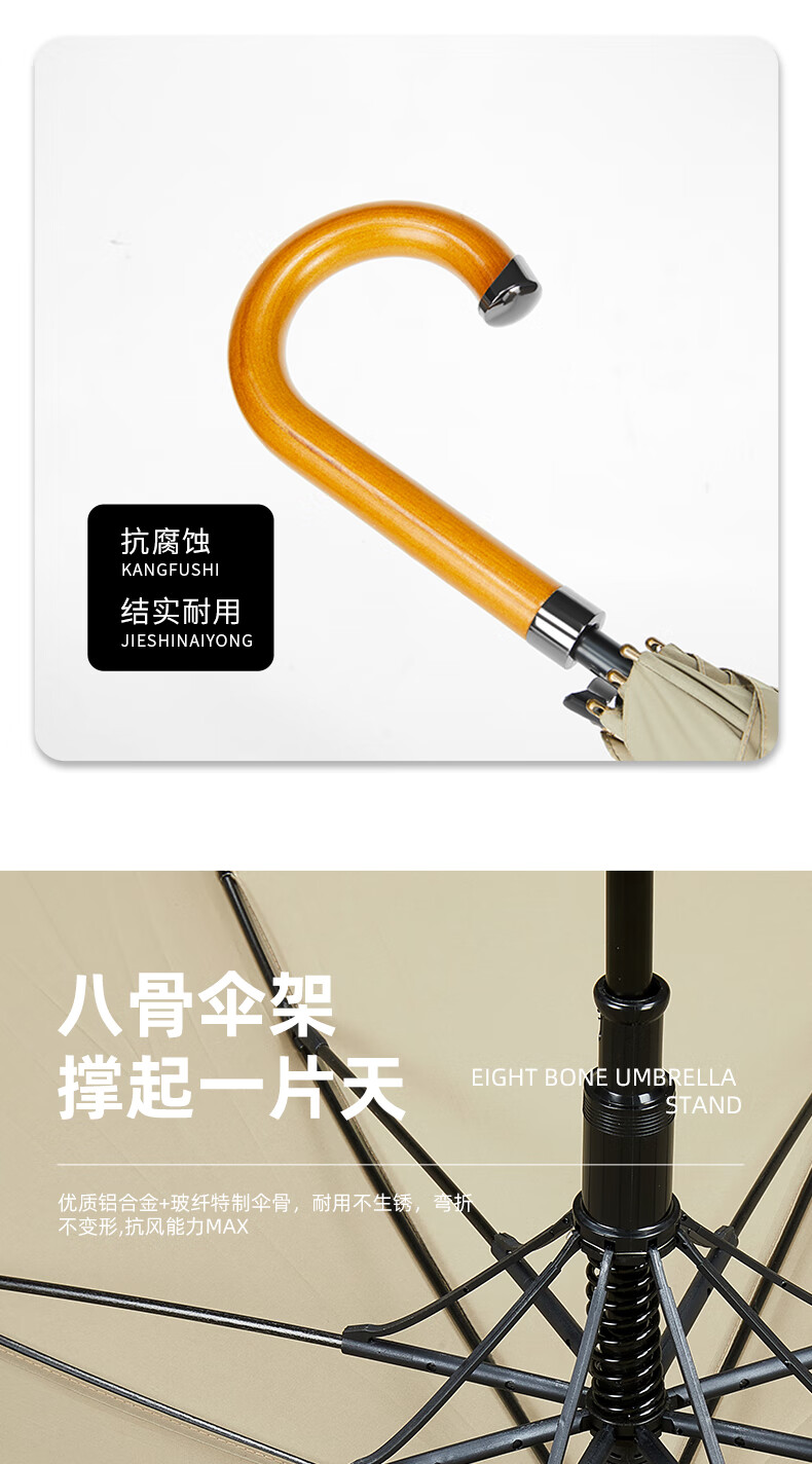 (巨邦佑)BJ+LEE 活力长柄伞 LE248035M 木质手柄太阳伞雨伞晴雨两用