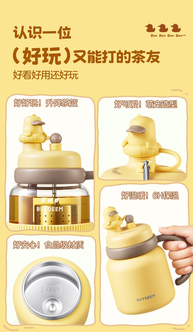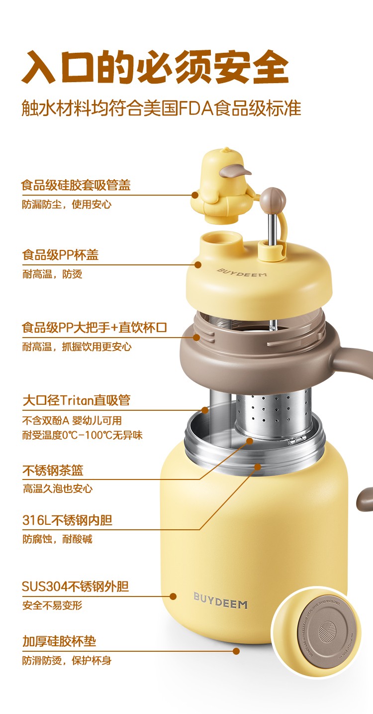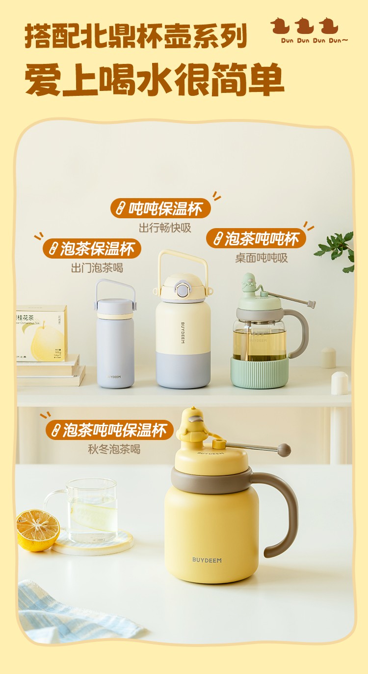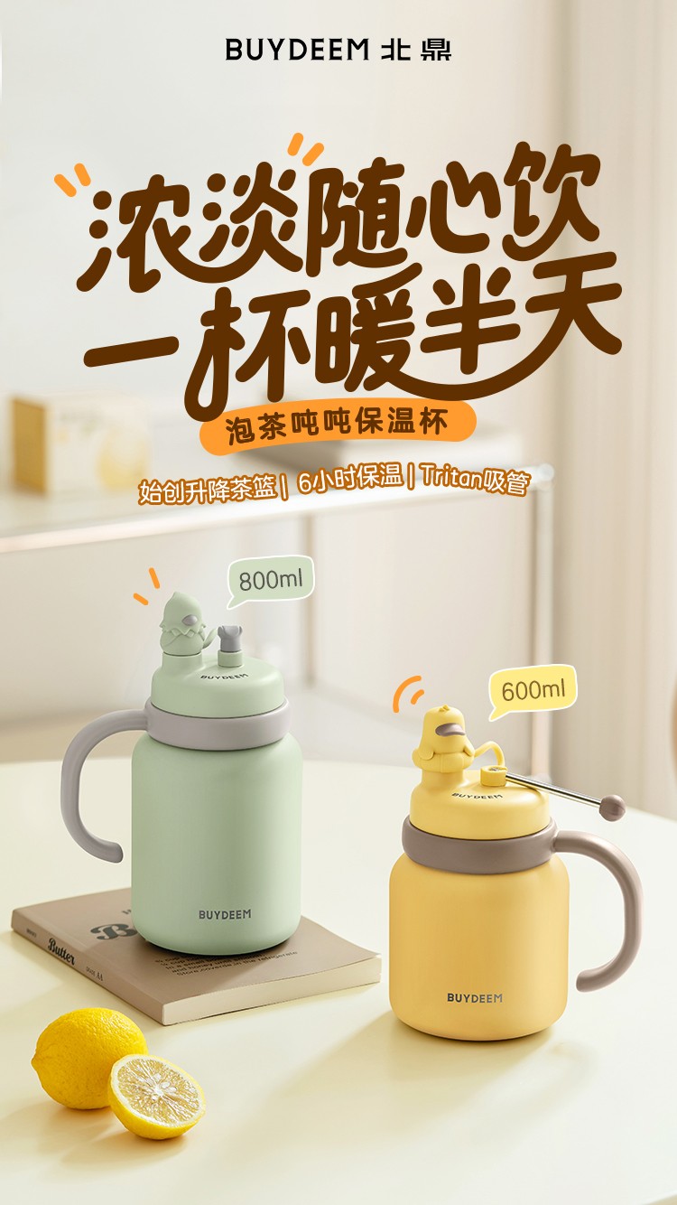 商品名称:(巨邦佑)R+北鼎泡茶吨吨保温杯600ml-轻松鸟 大容量实用水杯 家用高颜值保温杯 便携水壶礼物(浅杉绿)