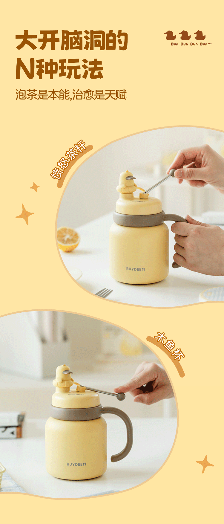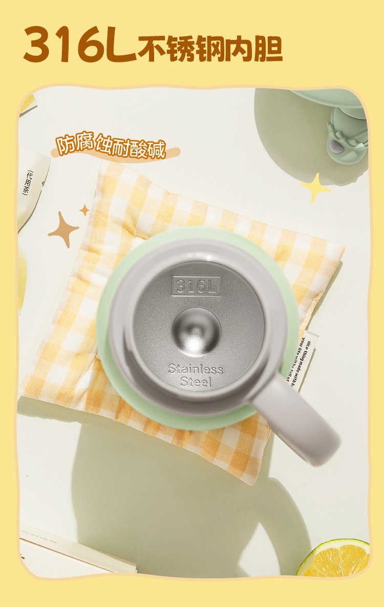 (巨邦佑)R+北鼎泡茶吨吨保温杯600ml-轻松鸟 大容量实用水杯 家用高颜值保温杯 便携水壶礼物(浅杉绿)
