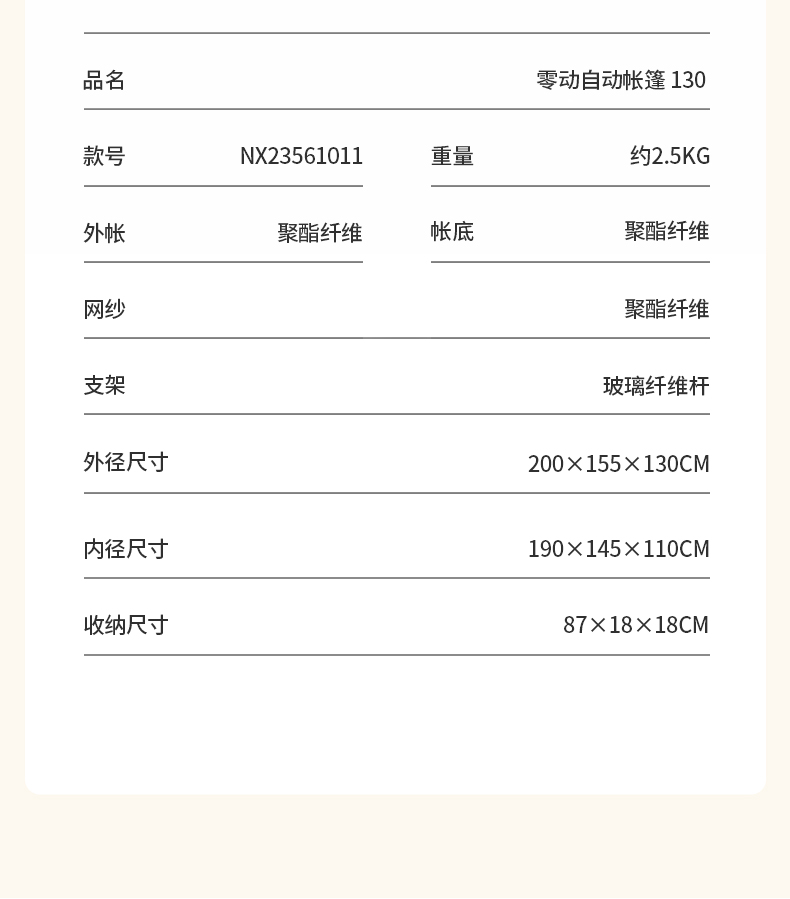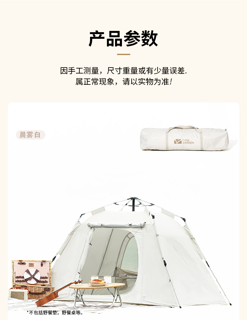 商品名称:(康恩)牧高笛零动自动速开帐篷双层防晒130晨雾白NX23561011