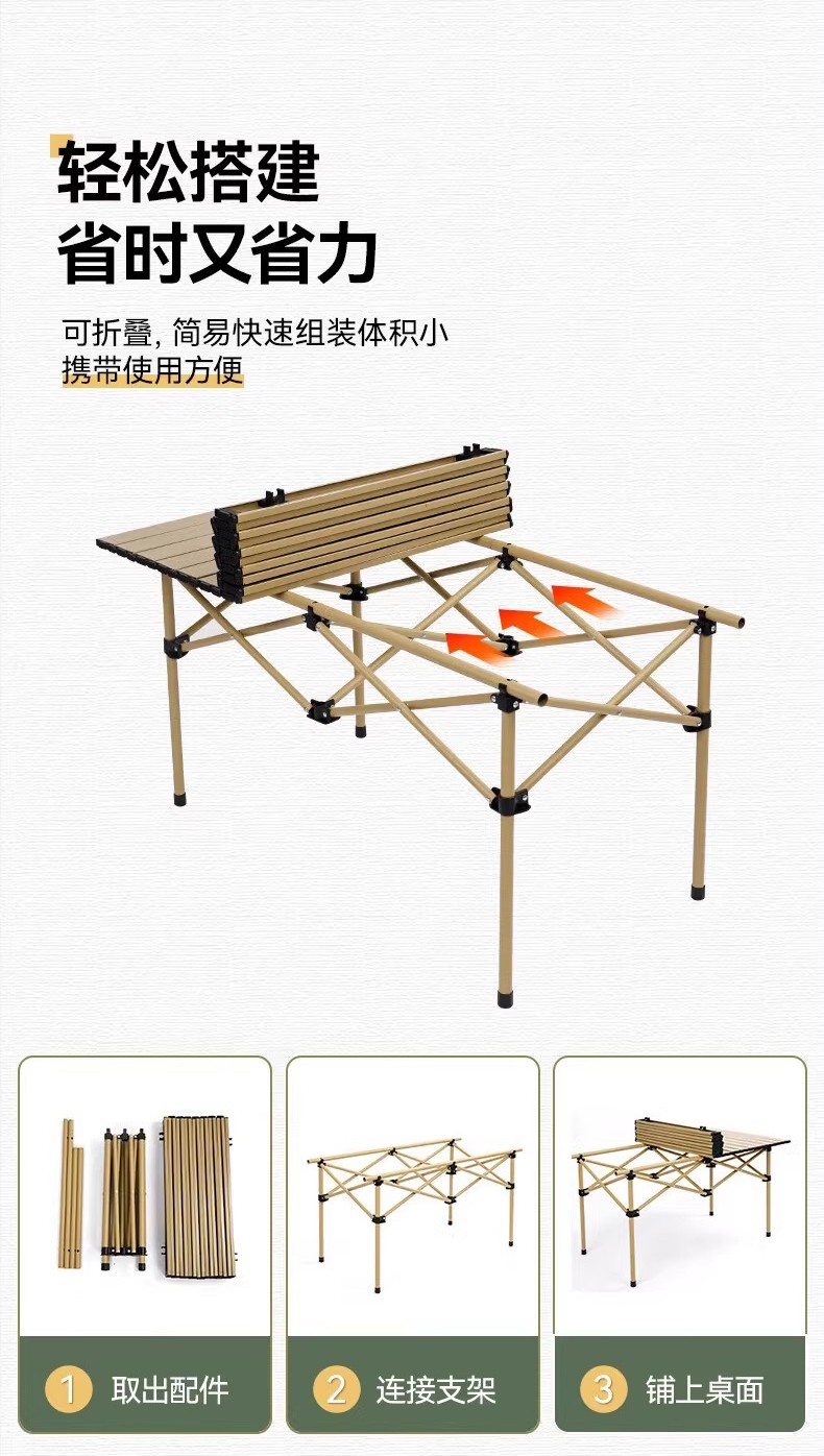商品名称:(康恩)君华仕碳素钢折叠蛋卷桌便携式桌子露营椅GS23665019黄沙色