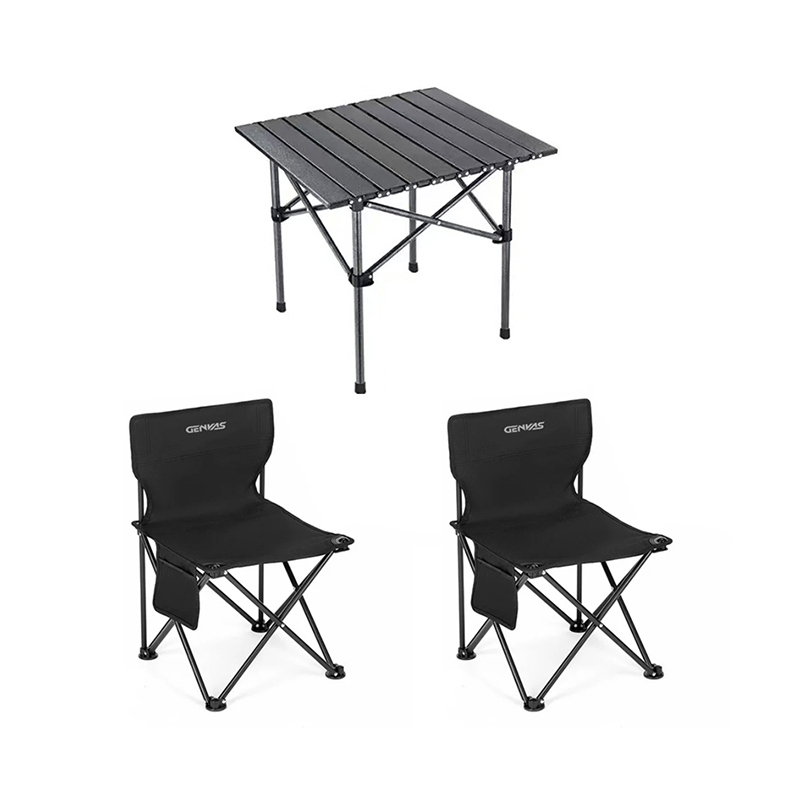 (康恩)君华仕经典款折叠椅一桌两椅便携式桌子露营椅(三件套)黑色