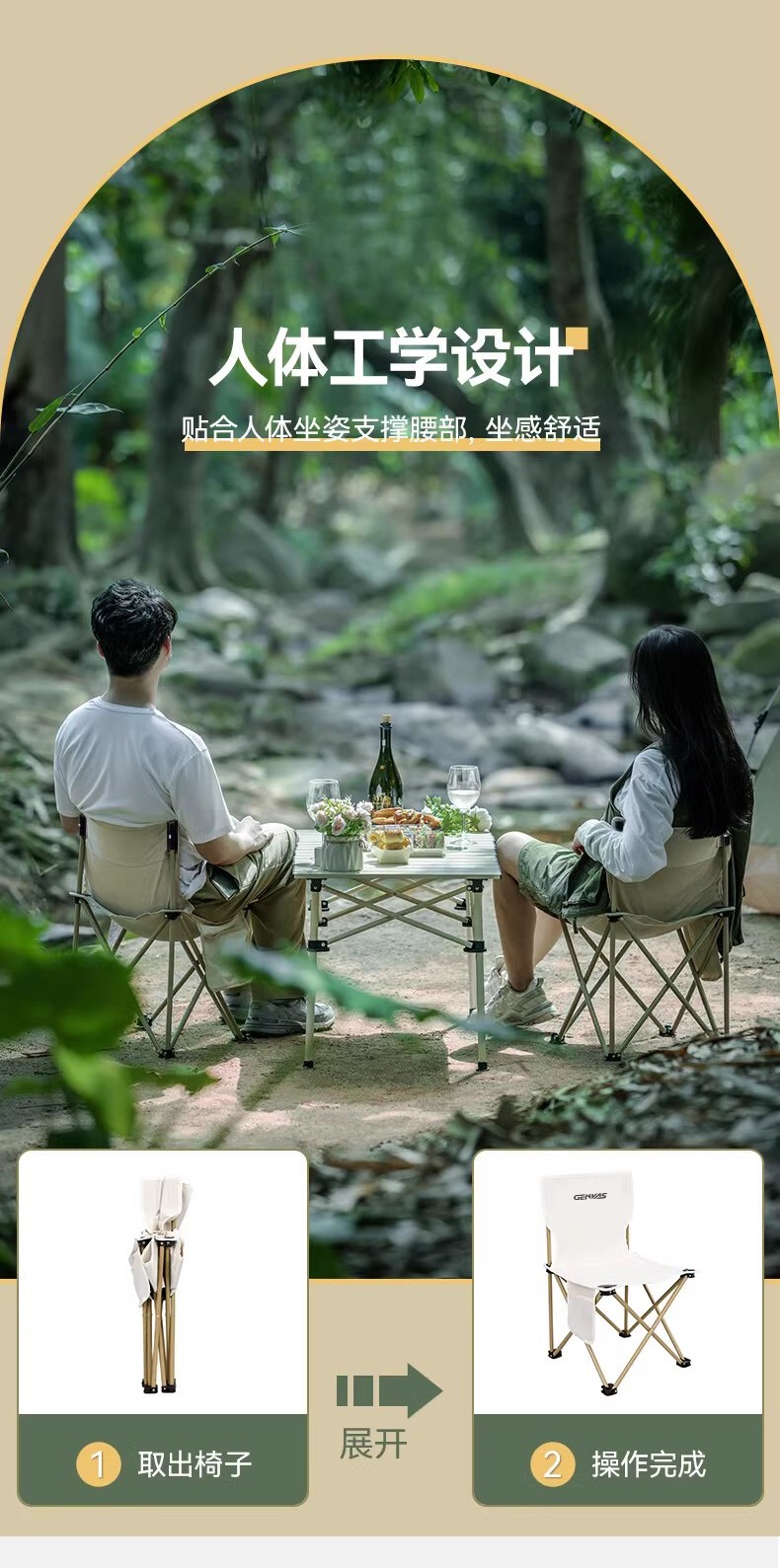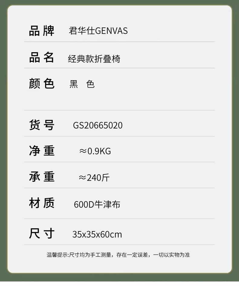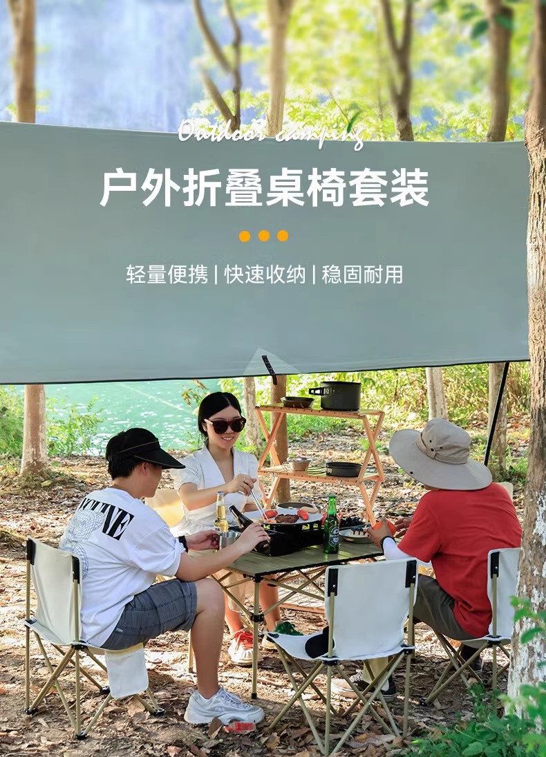 商品名称:(康恩)君华仕经典款折叠椅一桌两椅便携式桌子露营椅(三件套)黑色